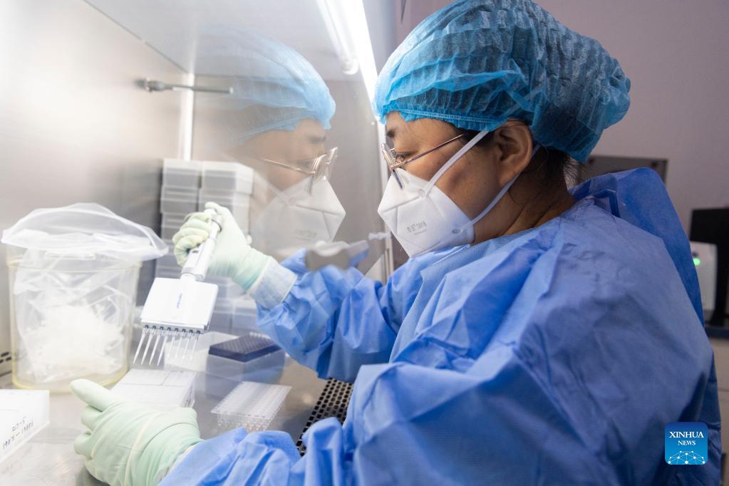 A medical worker works at a temporary lab for nucleic acid testing in Bayan County, Harbin of northeast China's Heilongjiang Province, Sept. 25, 2021. A total of three temporary labs for nucleic acid testing have been built in the county. (Xinhua/Xie Jianfei)