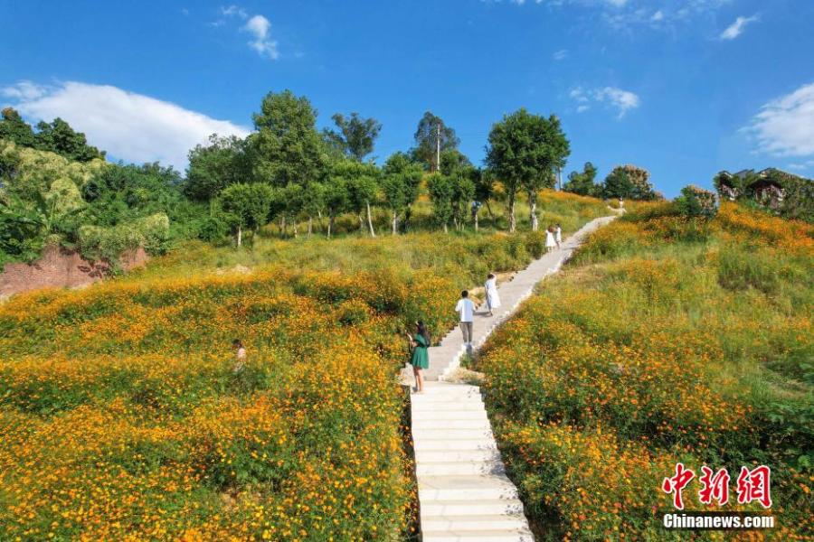 Chongqing's old residential area rehabilitated with golden sea of coreopsis (2)