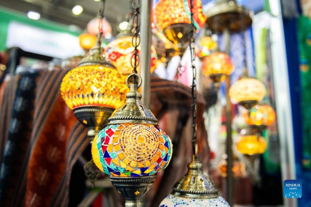 Photo taken on Sept. 27, 2021 shows lamps exhibited during the second China-Africa Economic and Trade Expo in Changsha, capital of central China's Hunan Province. The second China-Africa Economic and Trade Expo opened Sunday in Changsha. The four-day event, online and offline, has attracted nearly 900 enterprises from nearly 40 African countries and China, according to the organizers. (Xinhua/Chen Sihan)