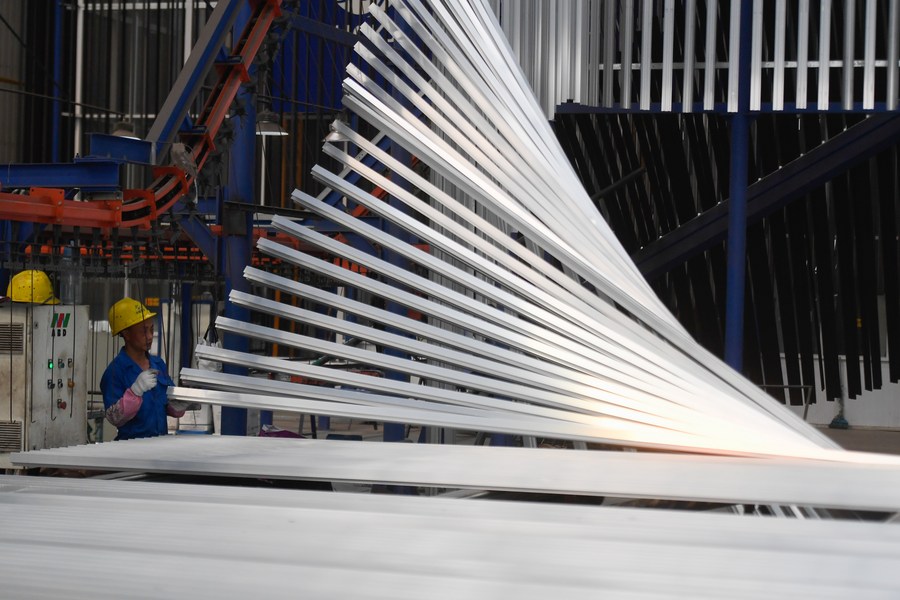 Photo taken on July 29, 2020, shows a workshop of Hongchang Aluminum Industry Co., Ltd. in Wuxing District of Huzhou, east China's Zhejiang Province. (Xinhua/Huang Zongzhi)
