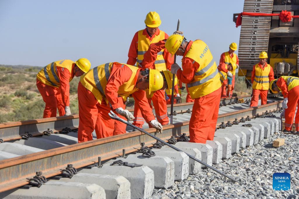 Track-laying work completed for major railway in China's Xinjiang (5)