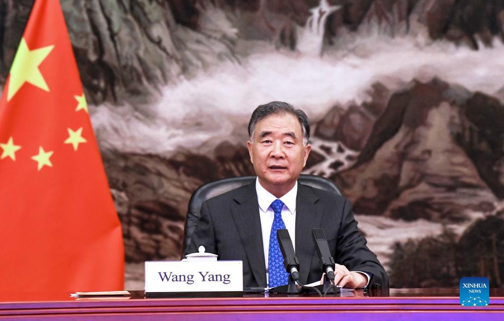BEIJING, Sept. 27 (Xinhua) -- China's top political advisor Wang Yang met Chairman of the Indonesian People's Consultative Assembly Bambang Soesatyo via video link Monday.