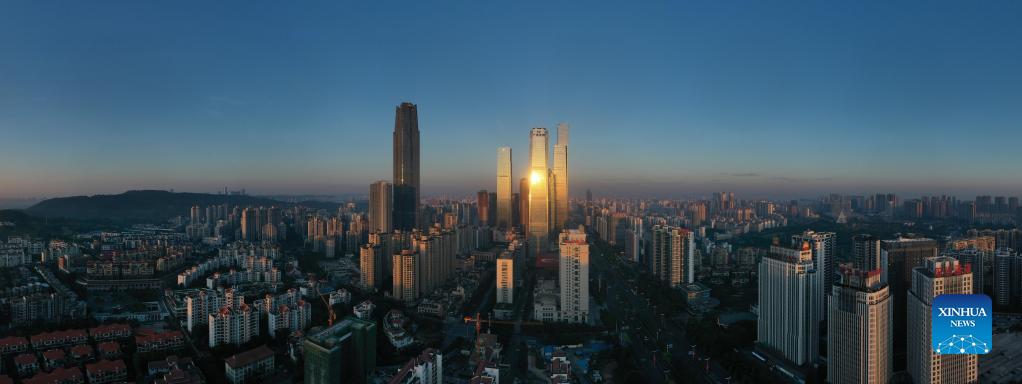 Aerial photo taken on Sept. 28, 2021 shows an early morning view of Nanning, capital of south China's Guangxi Zhuang Autonomous Region. (Xinhua/Huang Xiaobang)