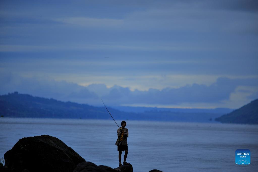 A fisherman is seen near the Lake Toba in North Sumatra, Indonesia, Sept. 29, 2021. (Photo by Sutanta Aditya/Xinhua)