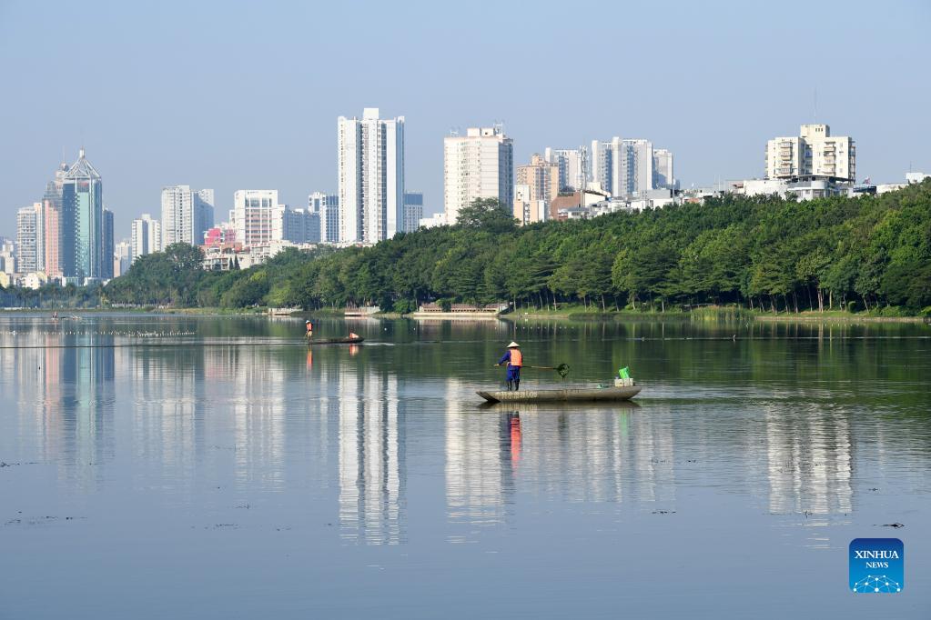 Photo taken on Sept. 29, 2021 shows a view of Nanhu Lake in Nanning, south China's Guangxi Zhuang Autonomous Region. (Xinhua/Lu Boan)