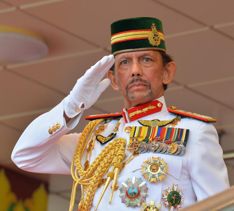 Brunei's Sultan Haji Hassanal Bolkiah salutes to the royal guard of honor during a ceremonial parade held for his 75th birthday celebration in Bandar Seri Begawan, capital of Brunei, July 15, 2021. (Photo by Jeffrey Wong/Xinhua)