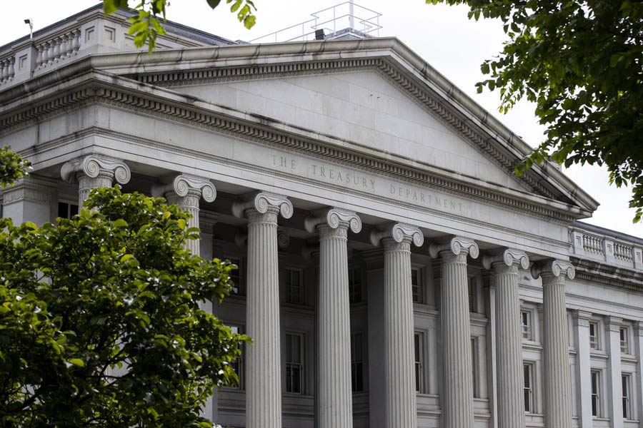 Photo taken on May 21, 2020 shows the U.S. Treasury Department building in Washington D.C., the United States. U.S. (Photo by Ting Shen/Xinhua)