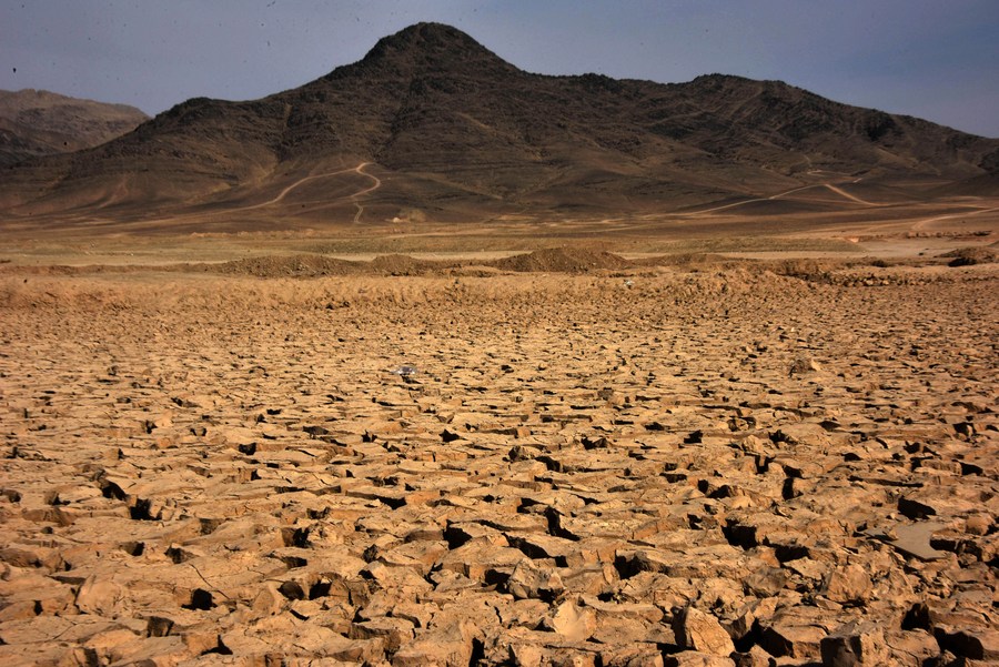 Photo taken on Feb. 19, 2021 shows a dam affected by drought in Kandahar city, Afghanistan. (Photo by Sanaullah Seiam/Xinhua)