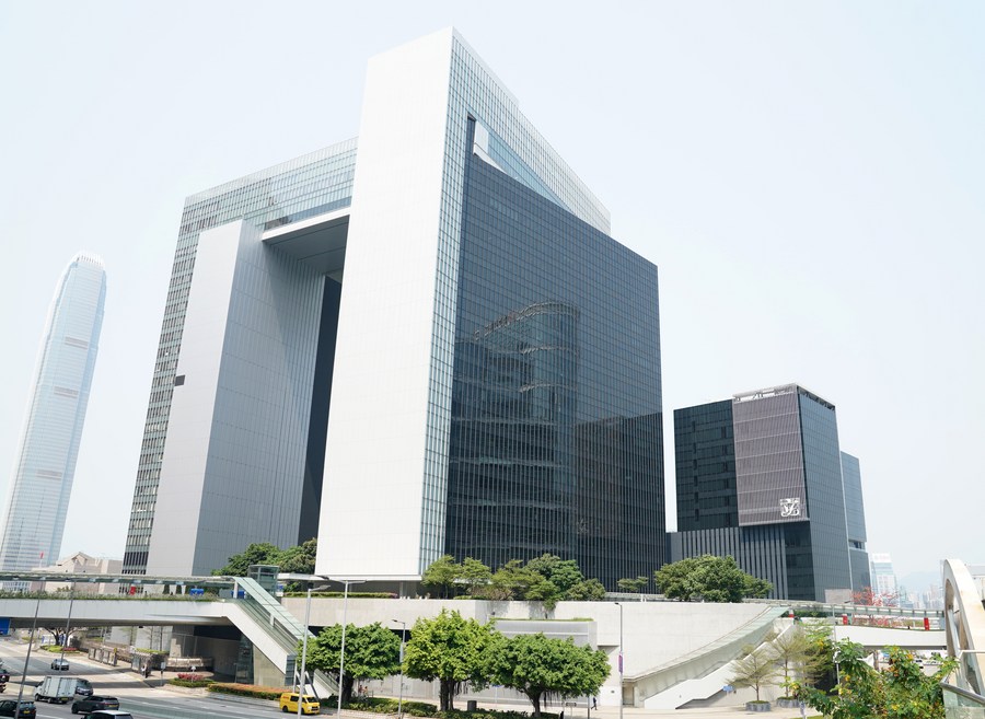 Photo taking on March 12, 2021 shows buildings of HKSAR government and Legislative Council in Central, Hong Kong. (Xinhua/Li Gang)