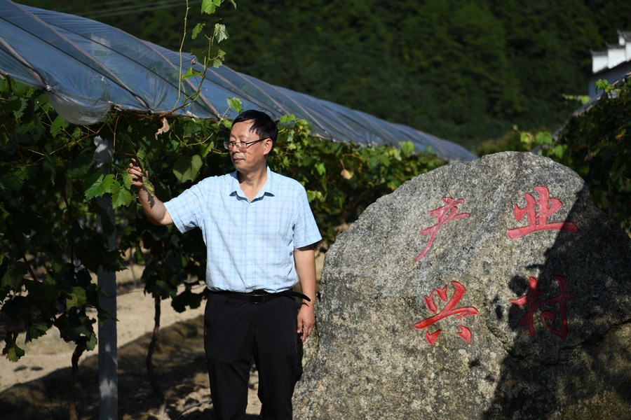Li Xingguo, a senior geological engineer, visits an agricultural industry park in Henan Village of Wuhe Township, Yuexi County, in east China's Anhui Province, Sept. 14, 2021. (Xinhua/Zhang Duan)