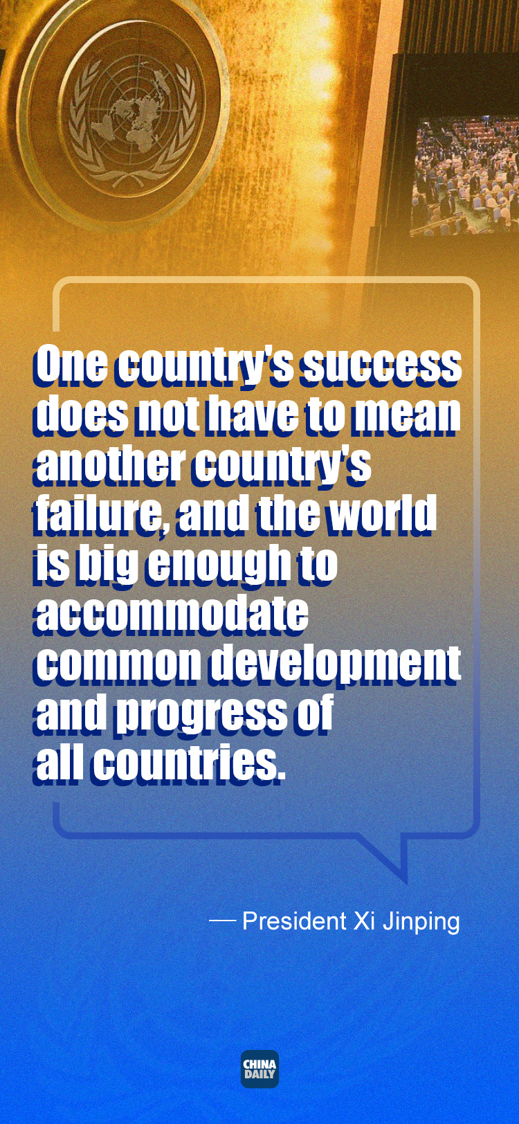 - One country's success does not have to mean another country's failure, and the world is big enough to accommodate common development and progress of all countries.