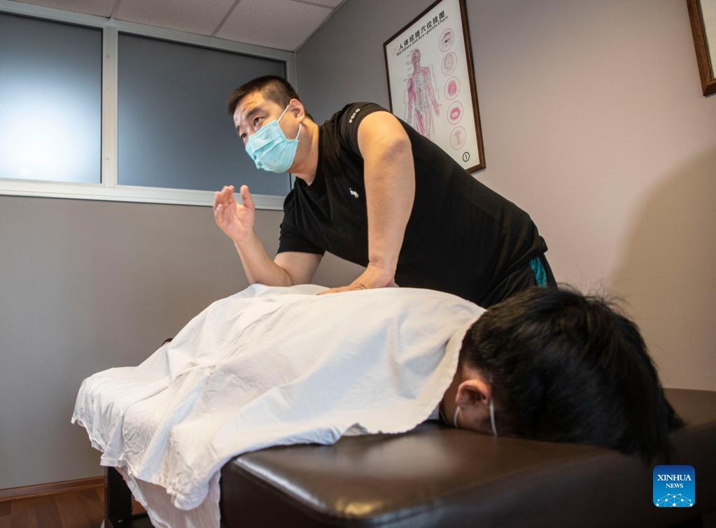 ISTANBUL, Oct. 8 (Xinhua) -- "These spots lining up along the spine of the human body, correlating to several vital organs, such as the lung, heart, liver, and kidney, are very important," Yagang Luo told his patient during a Chinese massage session in his clinic in Istanbul.