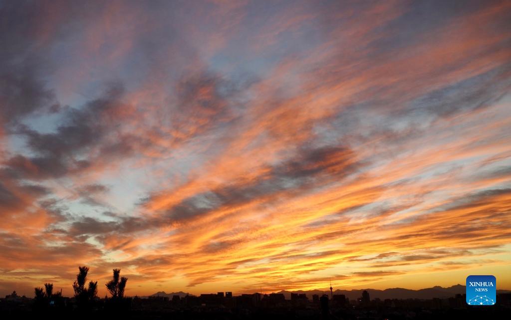 Photo taken on Oct. 10, 2021 shows the view of sunset glow in Beijing, capital of China. (Xinhua/Du Juanjuan)