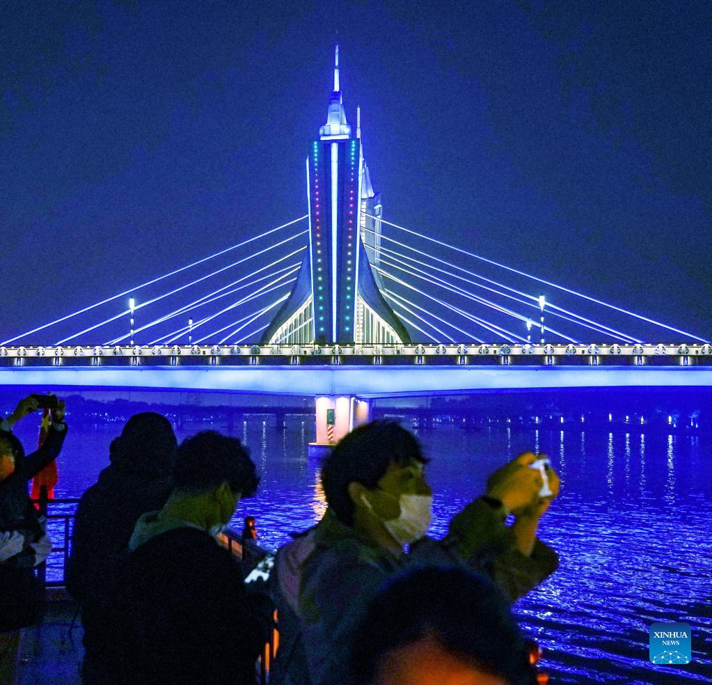 People take a boat on the North Canal in Tongzhou District of Beijing, capital of China, Oct. 9, 2021. The cultural festival which kicked off on Saturday released a series of achievements regarding construction and protection of the grand canal cultural belt. (Xinhua/Chen Zhonghao)