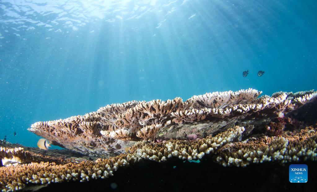 Photo taken on Sept. 28, 2021 shows corals on the seabed in the waters of Fenjiezhou Island of Hainan Province, south China. Fenjiezhou Island, located in the Lingshui Li Autonomous County, boasts coral reef ecosystem. Before proper development and management, the coral reefs, as well as seabed ecology, have been severely damaged due to illegal exploitation. To restore the local underwater ecology, Fenjiezhou scenic area authorities, together with oceanic and fishery researchers, have been growing and transplanting corals since 2004. Meanwhile, fishermen have been offered jobs in the scenic area. After over ten years of protection and restoration, the coral coverage rate of Fenjiezhou Island waters has reached 34 percent, with some area reaching 40 percent to 50 percent. The improvement of underwater ecosystem has attracted more marine creatures. (Xinhua/Yang Guanyu)
