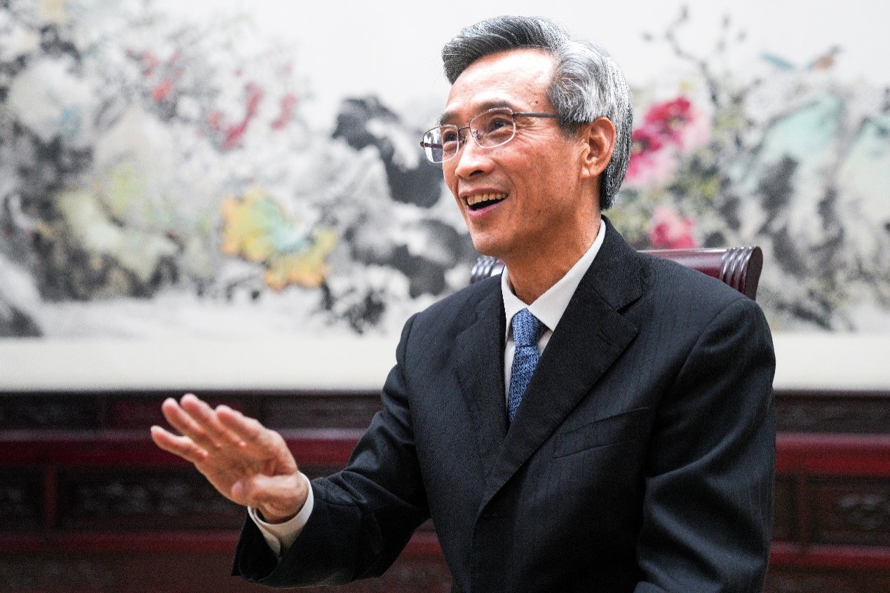Lin Songtian, President of the Chinese People's Association for Friendship with Foreign Countries, conducts an exclusive interview with People’s Daily Online. (People’s Daily Online/Peng Yukai)