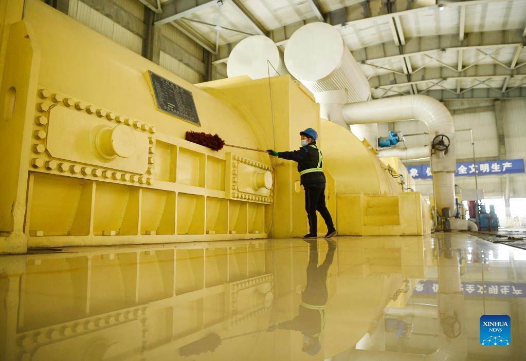 A worker of Xixia thermoelectric company cleans heating equipment in Yinchuan, northwest China's Ningxia Hui Autonomous Region, Oct. 11, 2021. The company started heating equipment maintenance work for the upcoming heating season. (Xinhua/Wang Peng)