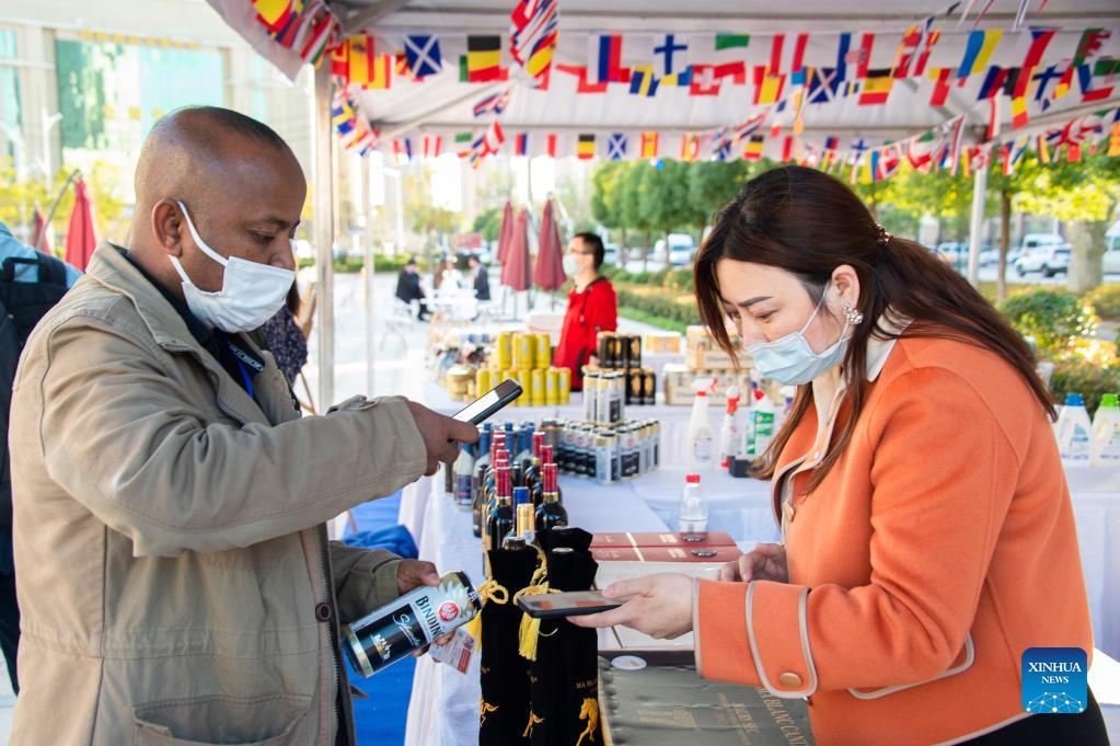 A visitor pays via a mobile payment system during the 2021 Global Digital Trade Conference and Wuhan (Hankoubei) Commodities Fair in Wuhan, capital of central China's Hubei Province, Oct. 12, 2021. (Photo by Wu Zhizun/Xinhua)