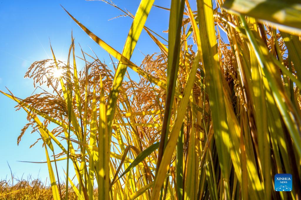 Photo taken on Oct. 12, 2021 shows a rice field in Wanchang Town of Yongji County in Jilin City, northeast China's Jilin Province. (Xinhua/Zhang Nan)