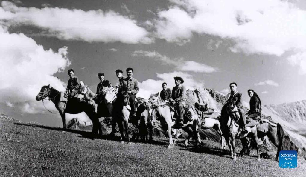 File photo taken in 1972 shows Yin Kaipu (3rd L) working with his colleagues in Dege County, southwest China's Sichuan Province. Yin, a 78-year-old renowned ecologist in China, has been dedicating himself to biodiversity protection for more than six decades. After graduating from school in 1960, Yin worked at the Chengdu Institute of Biology of the Chinese Academy of Sciences (CAS), mainly engaging in biological resources investigation and conservation. In 1978, Yin proposed to establish the Jiuzhaigou and Yading nature reserves to prevent them from being destroyed. Nowadays, Jiuzhaigou and Daocheng Yading have become famous scenic spots. (Yin Kaipu/Handout via Xinhua)
