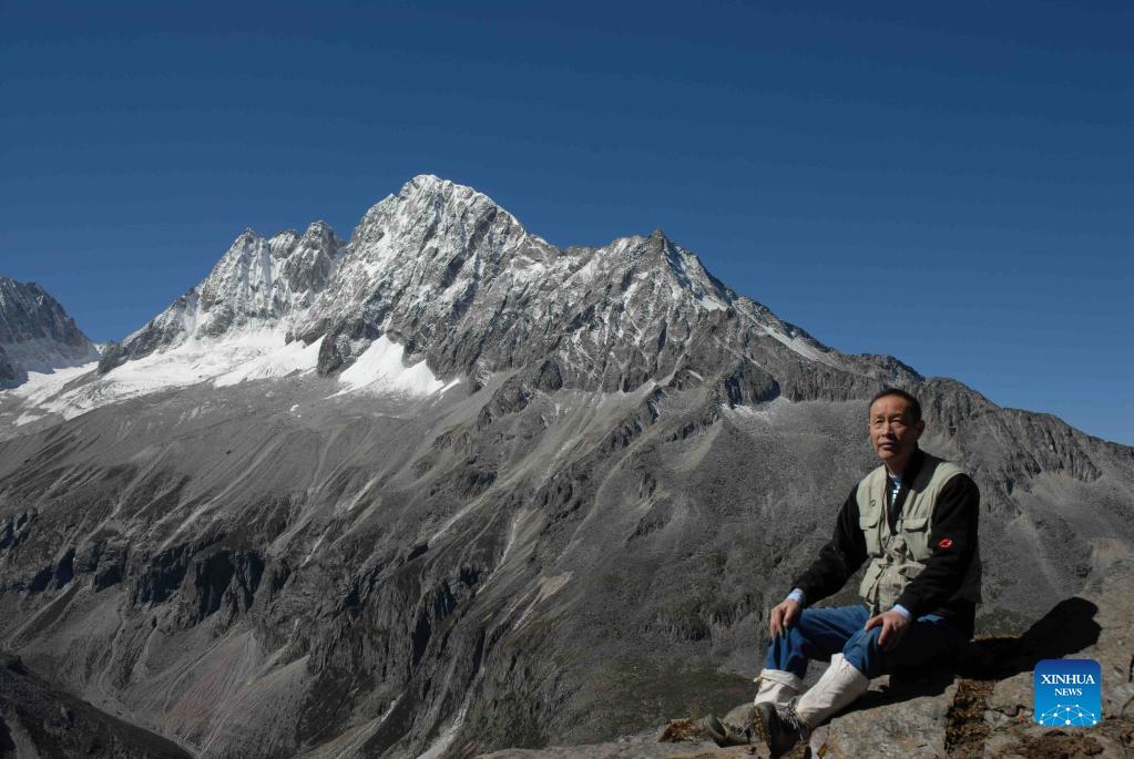 File photo taken in October 2008 shows Yin Kaipu climbing onto the Dapaoshan Mountain in Danba County, southwest China's Sichuan Province. Yin, a 78-year-old renowned ecologist in China, has been dedicating himself to biodiversity protection for more than six decades. After graduating from school in 1960, Yin worked at the Chengdu Institute of Biology of the Chinese Academy of Sciences (CAS), mainly engaging in biological resources investigation and conservation. In 1978, Yin proposed to establish the Jiuzhaigou and Yading nature reserves to prevent them from being destroyed. Nowadays, Jiuzhaigou and Daocheng Yading have become famous scenic spots. (Yin Kaipu/Handout via Xinhua)