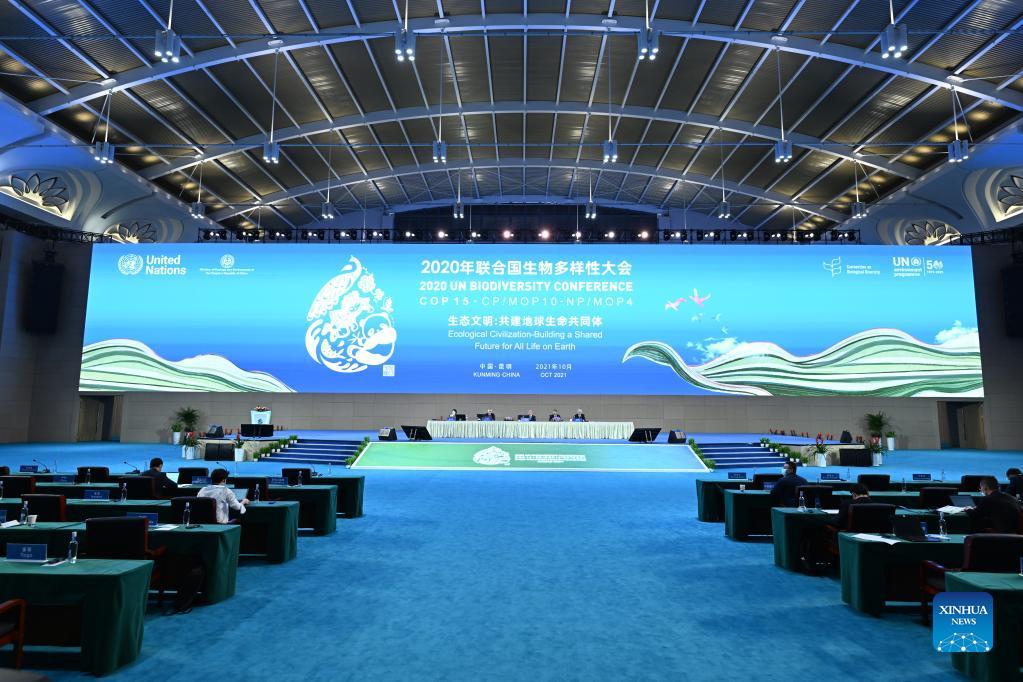 A ministerial roundtable session of the High-Level Segment of the first part of the 15th meeting of the Conference of the Parties to the Convention on Biological Diversity (COP15) is held in Kunming, southwest China's Yunnan Province, Oct. 13, 2021. (Xinhua/Chen Yehua)
