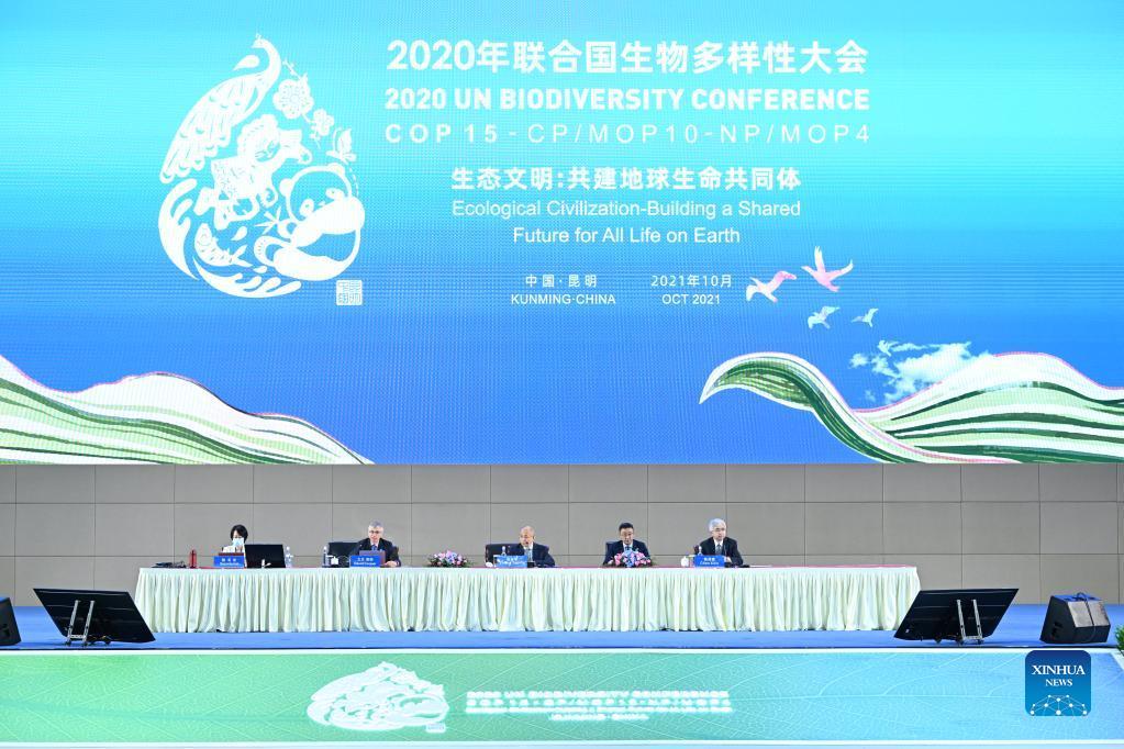 A ministerial roundtable session of the High-Level Segment of the first part of the 15th meeting of the Conference of the Parties to the Convention on Biological Diversity (COP15) is held in Kunming, southwest China's Yunnan Province, Oct. 13, 2021. (Xinhua/Chen Yehua)