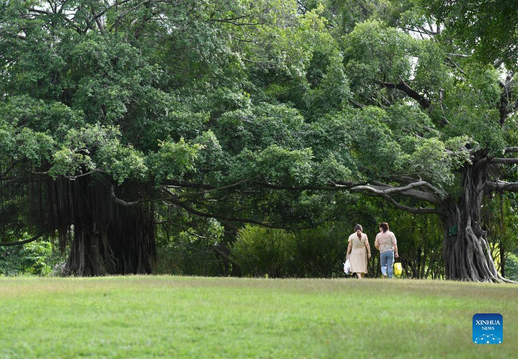 Citizens walk on a grassland along Nanhu Lake in Nanning, capital of south China's Guangxi Zhuang Autonomous Region, Oct. 12, 2021. (Xinhua/Lu Boan)