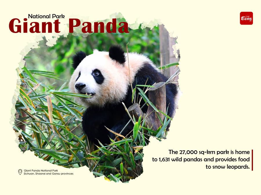 The 27,000 sq-km Giant Panda National Park is home to 1,631 wild pandas and provides food to snow leopards.
