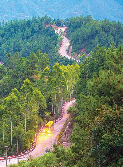 Photo shows a bus driving on the road linking Junying village, near Xiamen, southeast China's Fujian province. (People's Daily/He Dongfang)