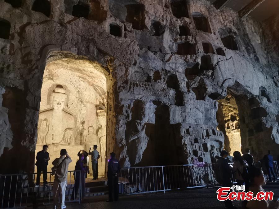 Fascinating night view in Longmen Grottoes attracts tourists (2)