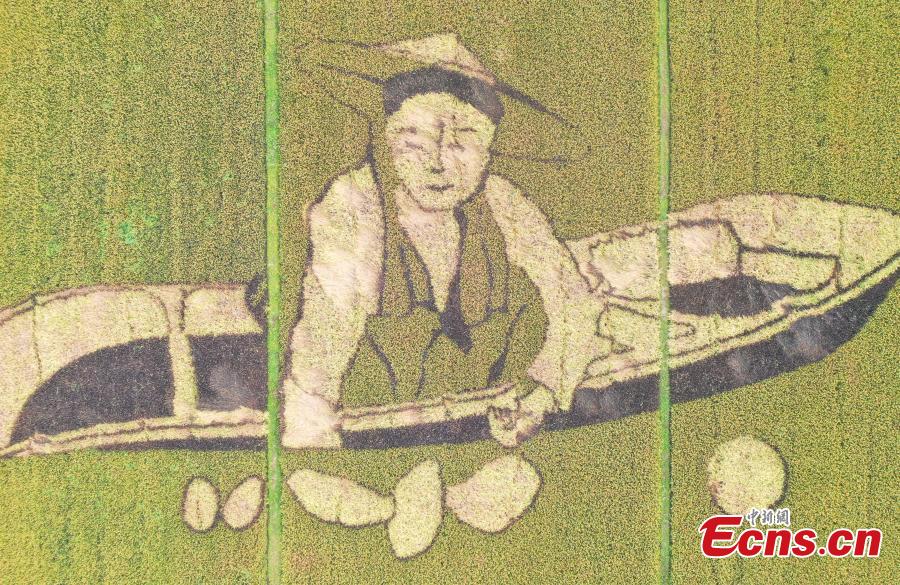 This photo taken on Oct. 14, 2021, shows a rice paddy field painting in Hangzhou, Zhejiang Province. (Photo: China News Service/Wang Gang)