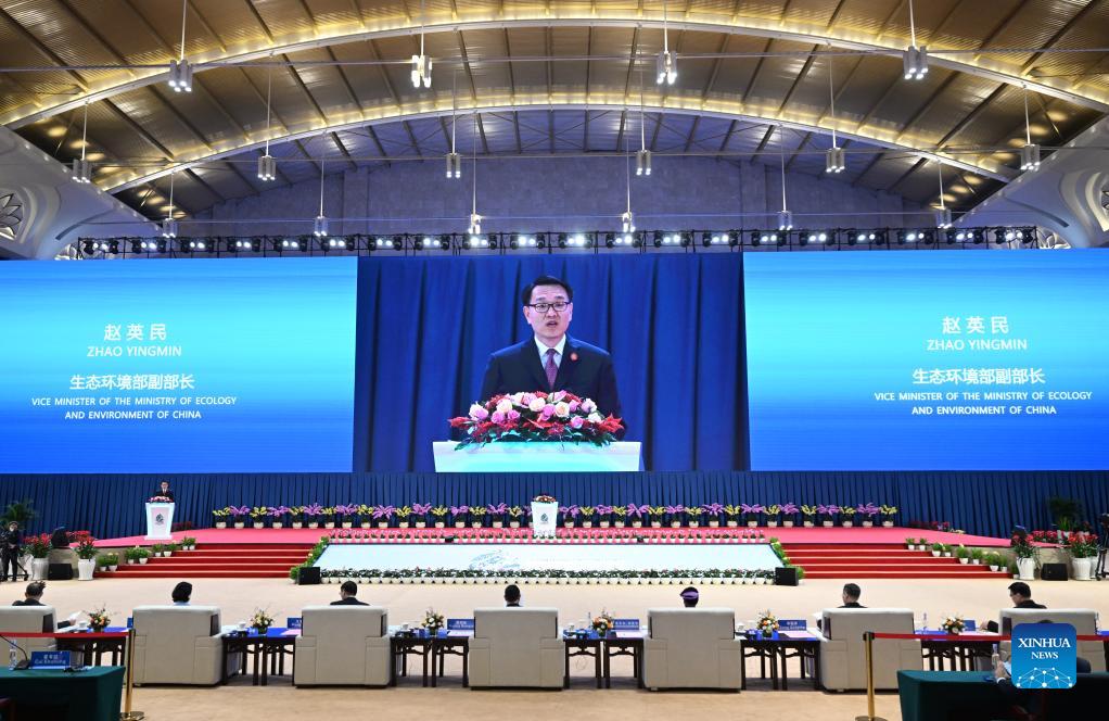 Zhao Yingmin, vice minister of China's Ministry of Ecology and Environment, presides over the closing ceremony of the Ecological Civilization Forum of the first part of the Conference of the Parties to the Convention on Biological Diversity, or COP15, in Kunming, southwest China's Yunnan Province, Oct. 15, 2021. (Xinhua/Chen Yehua)