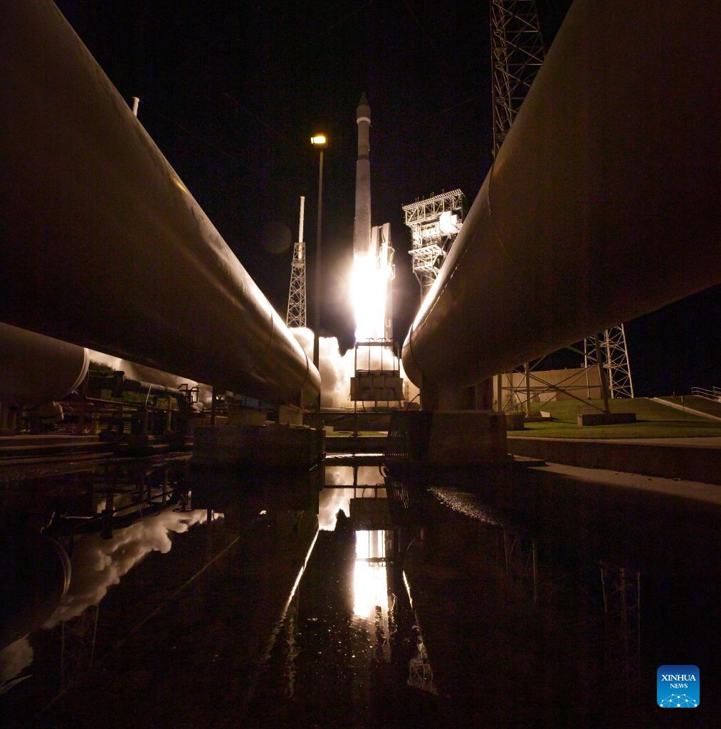 A United Launch Alliance Atlas V 401 rocket with the Lucy spacecraft launches from Space Launch Complex-41 at Cape Canaveral Space Force Station in Florida, the United States, on Oct. 16, 2021. The U.S. National Aeronautics and Space Administration (NASA) launched its Lucy spacecraft on Saturday on a 12-year journey to explore Jupiter's Trojan asteroids, seeking to unlock mysteries of the solar system. (Bill Ingalls/NASA/Handout via Xinhua)