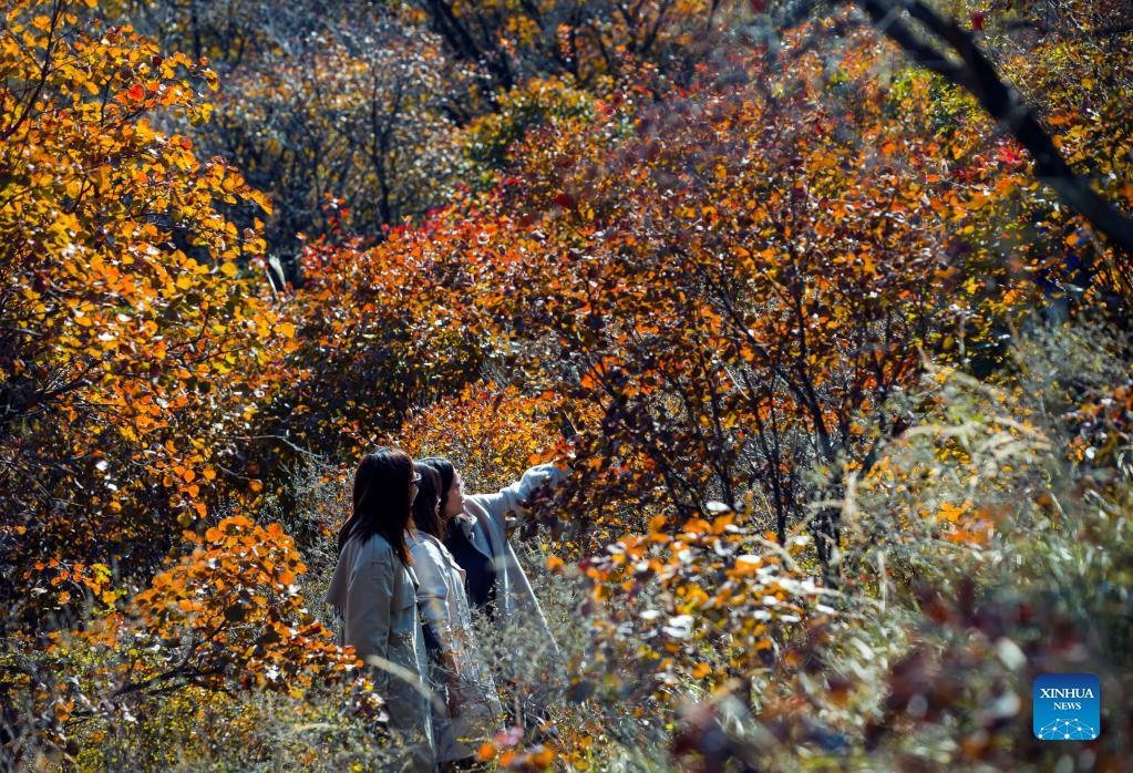 Tourists visit Baiyun mountain scenic spot in Wuan City, north China's Hebei Province,on Oct. 18, 2021. (Xinhua/Luo Xuefeng)