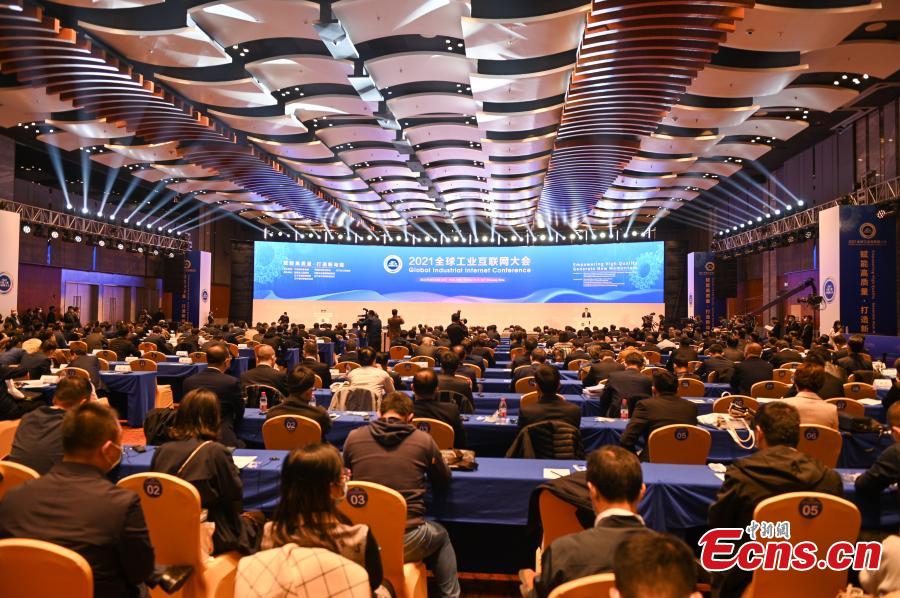 Photo taken on Oct. 18, 2021 shows the opening ceremony of the 2021 Global Industrial Internet Conference. (Photo: China News Service/Yu Haiyang)