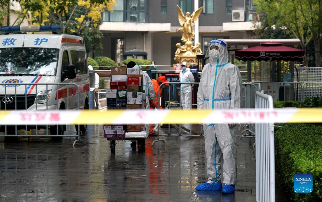 Photo taken on Oct. 19, 2021 shows the entrance of a community which is under closed-off management in Xi'an, northwest China's Shaanxi Province. Shaanxi Province has reported seven locally transmitted COVID-19 confirmed cases and one asymptomatic case as of Monday in the recent COVID-19 resurgence. The authorities have strengthened the prevention and control measures to halt the spread of the coronavirus. (Xinhua/Liu Xiao)