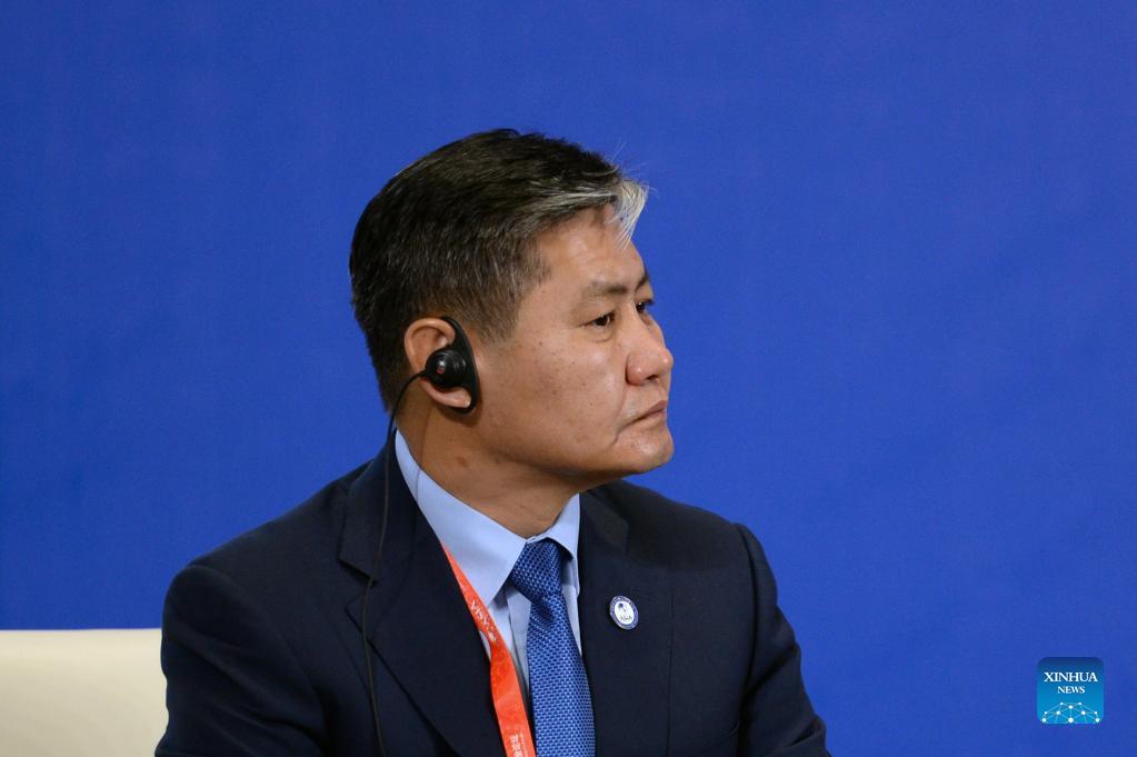 Mongolian Ambassador to China Tuvshin Badral attends the first Global Economic Development and Security Forum of the Boao Forum for Asia (BFA) in Changsha, central China's Hunan Province, Oct. 19, 2021. The first Global Economic Development and Security Forum of the Boao Forum for Asia (BFA) kicked off on Monday. With the theme of economic security and sustainable development in a world of great change, the three-day forum aims to provide a high-end platform for promoting dialogue between political and business leaders from around the world. (Xinhua/Chen Zhenhai)