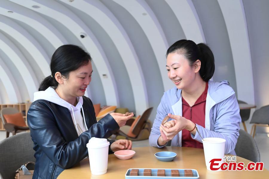 People taste chocolate in a cafe in Chengdu, Sichuan Province. (Photo: China News Service/An Yuan)
