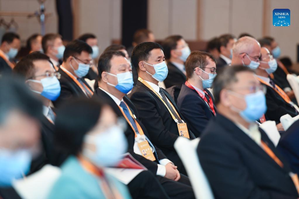 Delegates attend the opening ceremony and plenary session of the Annual Conference of Financial Street Forum 2021 in Beijing, capital of China, Oct. 20, 2021. Themed "Economic Resilience and Financial Accomplishment", the Annual Conference of Financial Street Forum 2021 kicked off Wednesday in Beijing. (Xinhua/Ju Huanzong)