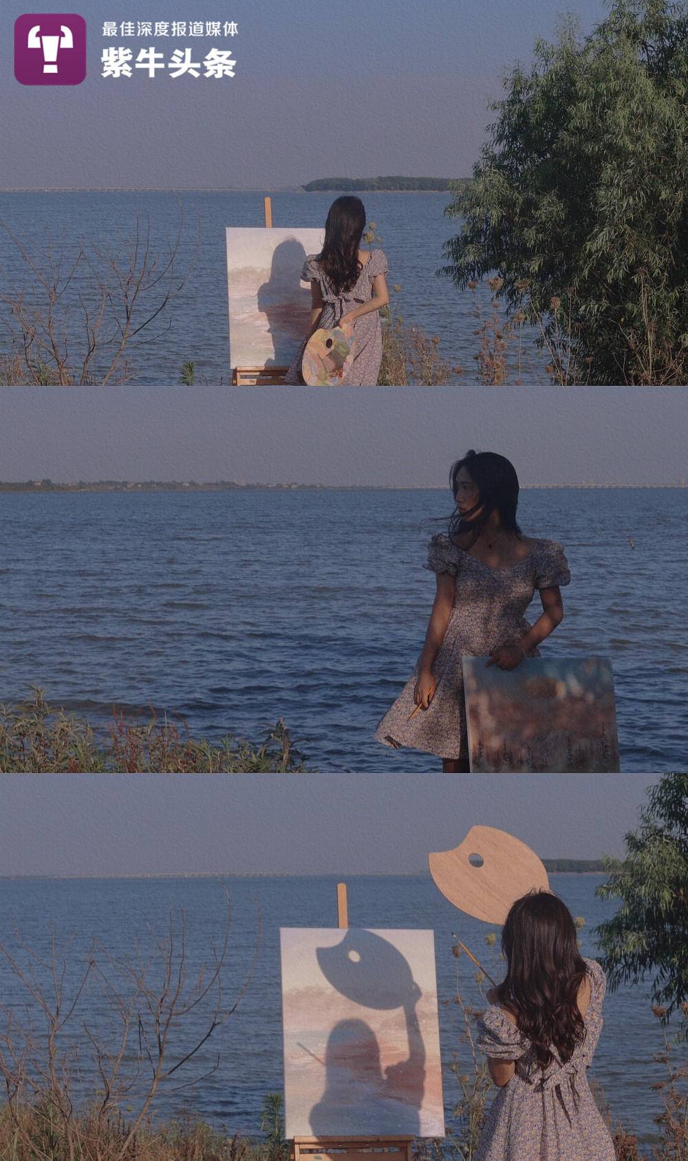 Photo shows Li painting clouds by a lake. (Photo provided by the interviewee)