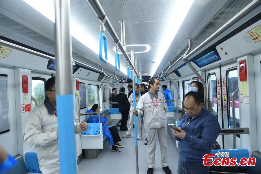 People take China's first urban rail vehicle with a dual-current system in Chongqing, Oct. 20, 2021. (Photo: China News Service/Chen Chao)