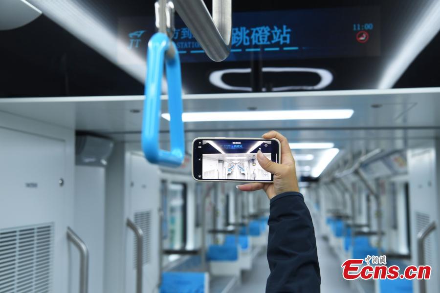 Photo taken on Oct. 20, 2021 shows the inside view of a carriage of China's first urban rail vehicle with a dual-current system in Chongqing. (Photo: China News Service/Chen Chao)