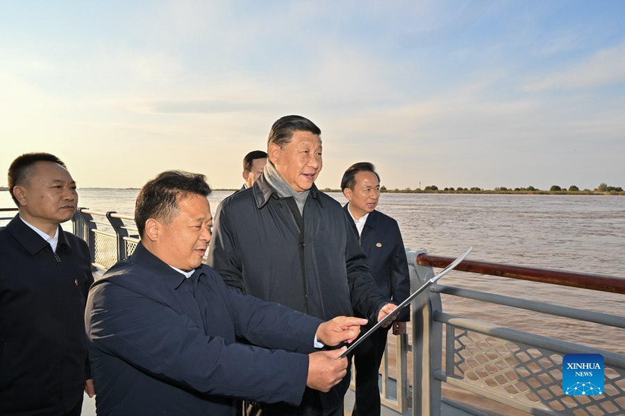 JINAN, Oct. 21 (Xinhua) -- Xi Jinping, general secretary of the Communist Party of China Central Committee, on Wednesday inspected the estuary of the Yellow River in the city of Dongying, east China's Shandong Province.