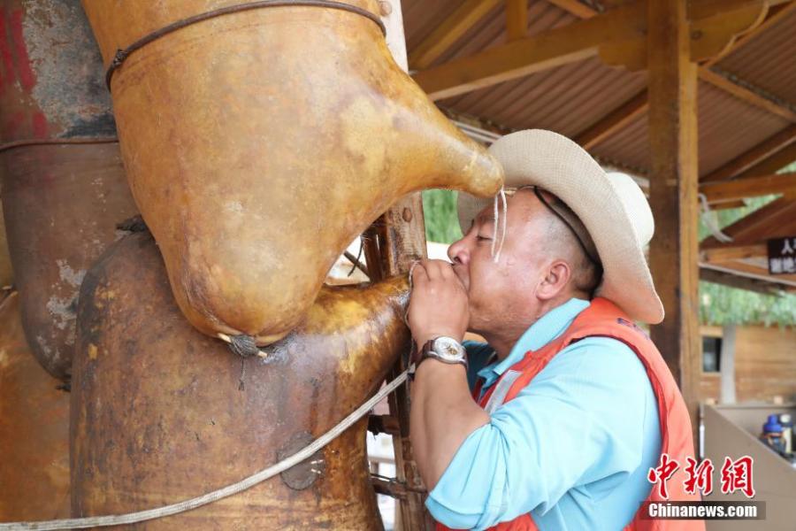 A craftsman makes a goatskin raft. (Photo: China News Service/ Yu Jing, Ji Xiang)