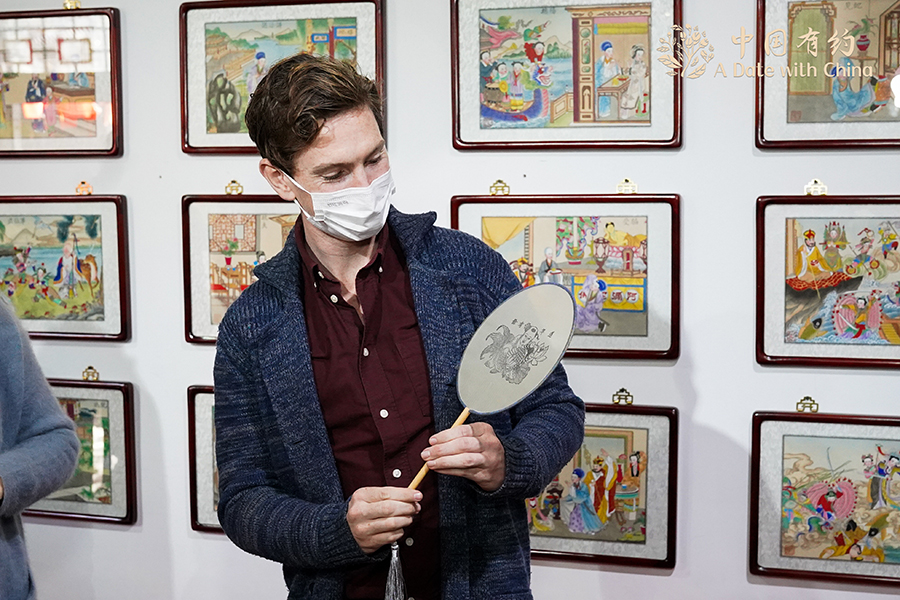 Foreign journalists and internet influencers experience traditional Chinese culture in North China's Tianjin on Oct 22, 2021. [Photo/chinadaily.com.cn]