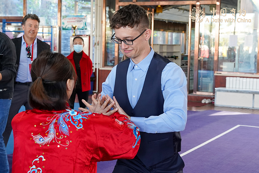 Foreign journalists and internet influencers experience traditional Chinese culture in North China's Tianjin on Oct 22, 2021. [Photo/chinadaily.com.cn]