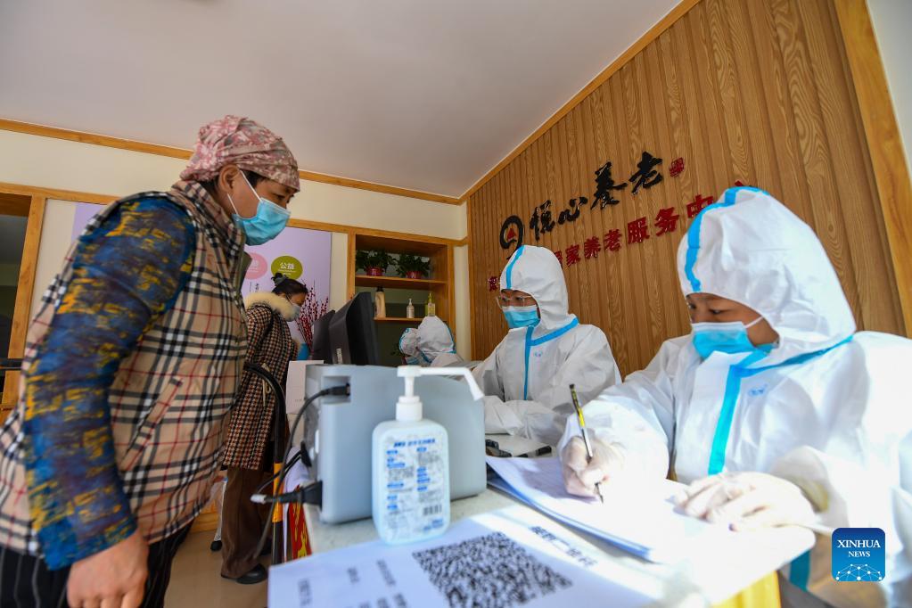 Staff members register the personal information of a resident at a temporary nucleic acid testing site in Hohhot, north China's Inner Mongolia Autonomous Region, Oct. 24, 2021. To curb the spread of COVID-19, the city of Hohhot has launched nucleic acid testing for residents from key regions and all people entering and leaving Hohhot by air, train, shuttle bus, taxi, private cars and other means of transportation. (Xinhua/Peng Yuan)
