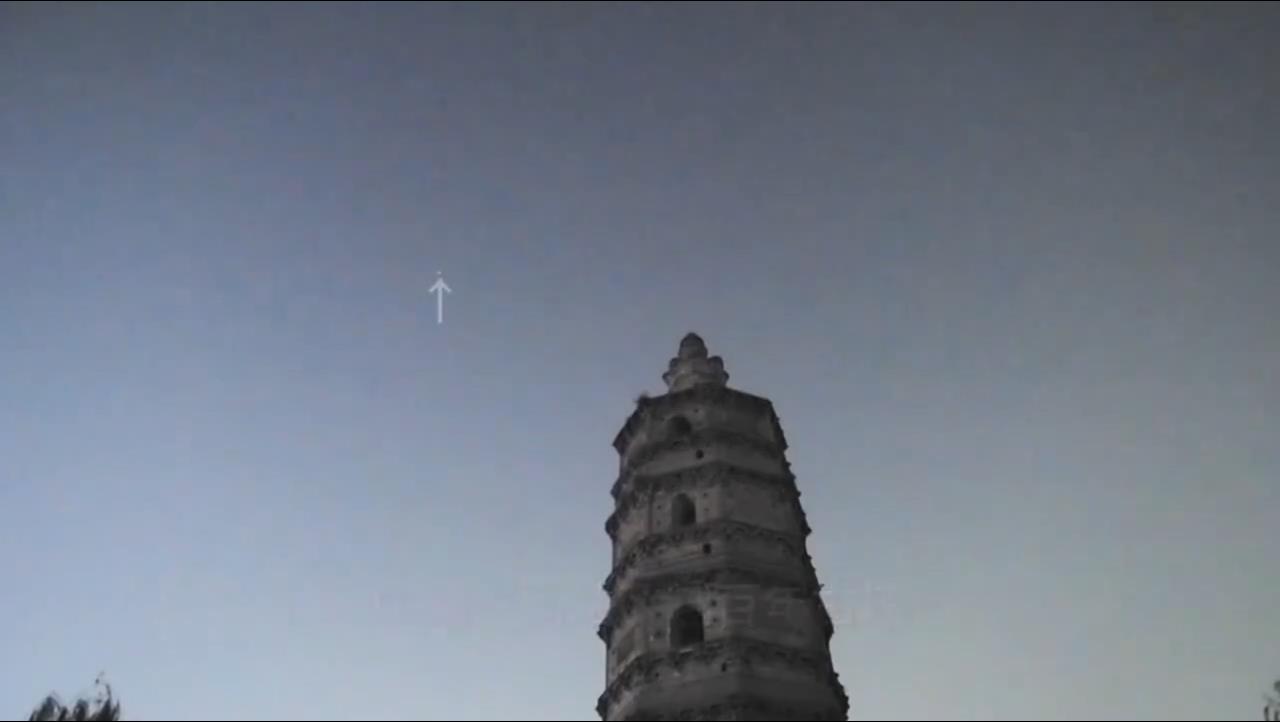 China's space station flew over an ancient pagoda at Liangxiang Township of Fangshan District, Beijing on Sunday.