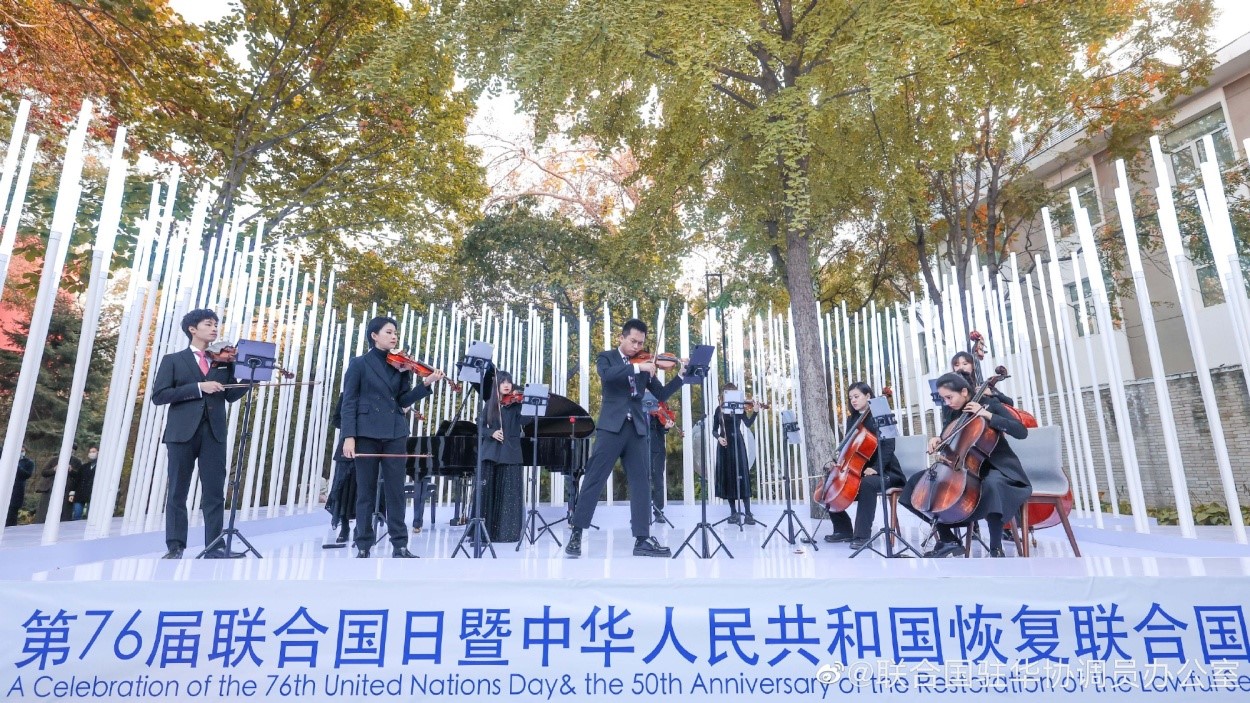 The United Nations in China (UN China) holds activities at the garden of the building of the UN in Beijing to celebrate the 76th UN Day (Oct. 24) and the 50th anniversary of the restoration of the lawful seat of the People’s Republic of China in the UN, Oct. 22, 2021. (Photo/Weibo account of the office of the UN Resident Coordinator in China)